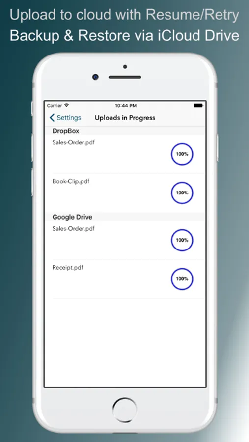**Scan It All** has DropBox, Google Drive and OneDrive support, upload your PDF to cloud service from within the app.