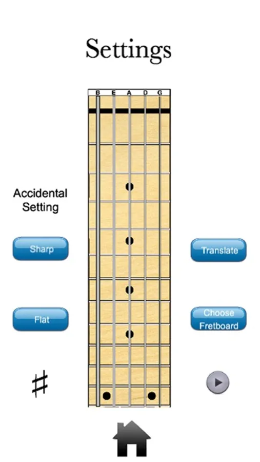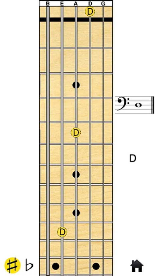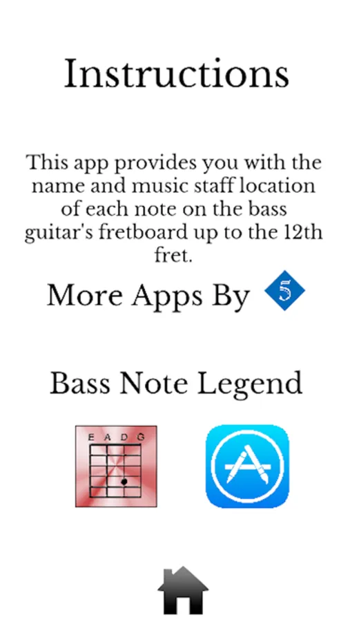 The 5 String Bass Note Legend App provides you with the name and music staff location of each note on the bass guitar's fretboard up to the 12th fret.