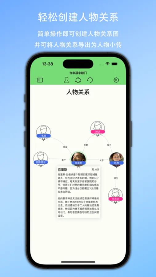 简单高效地创建人物关系图,不仅可以保存成图片,更可轻松导出成人物小传。