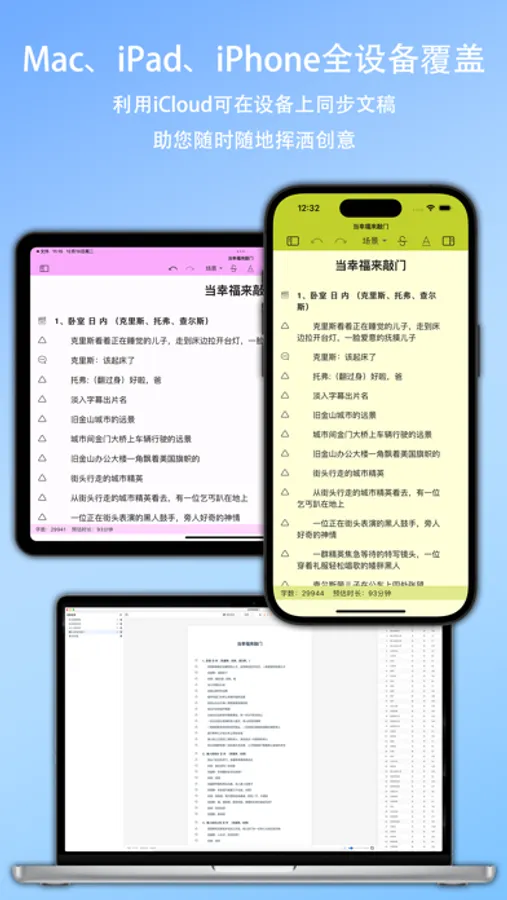利用iCloud同步文稿,助您随时随地挥洒创意。