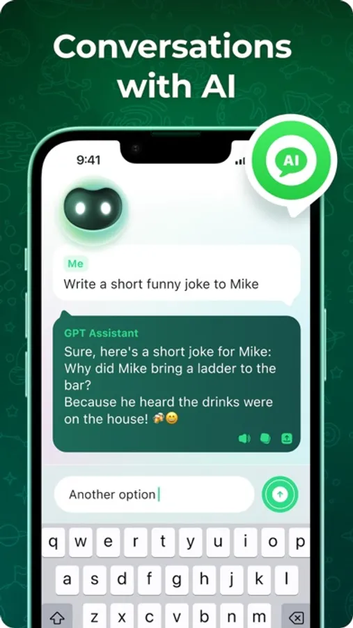 Benefit from an integrated AI Chatbot designed to offer instant responses, efficient message composition, and seamless task handling - all within the same app. Whether you need quick answers, assistance with various tasks, or engaging conversations, our AI Chatbot is available 24/7, ensuring continuous support.