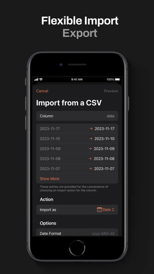• Import from a CSV files. Automatic import from Lunch Money.