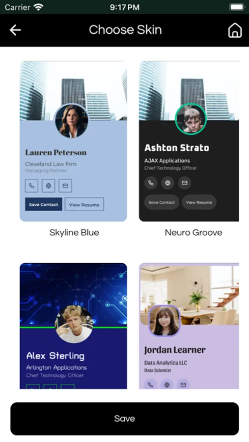 - Customizable Cards: Personalize your digital card with various designs and templates to reflect your professional identity.