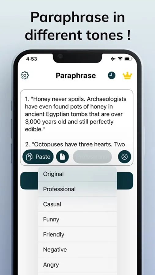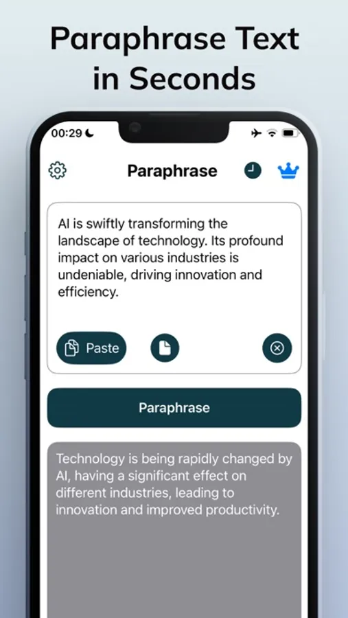 Welcome to Paraphrase AI, the innovative app that transforms the way you handle text. Whether you're a student, a professional, or anyone who deals with text regularly, our app is designed to make your writing smoother, clearer, and more efficient. Here's what makes Paraphrase AI a must-have tool: