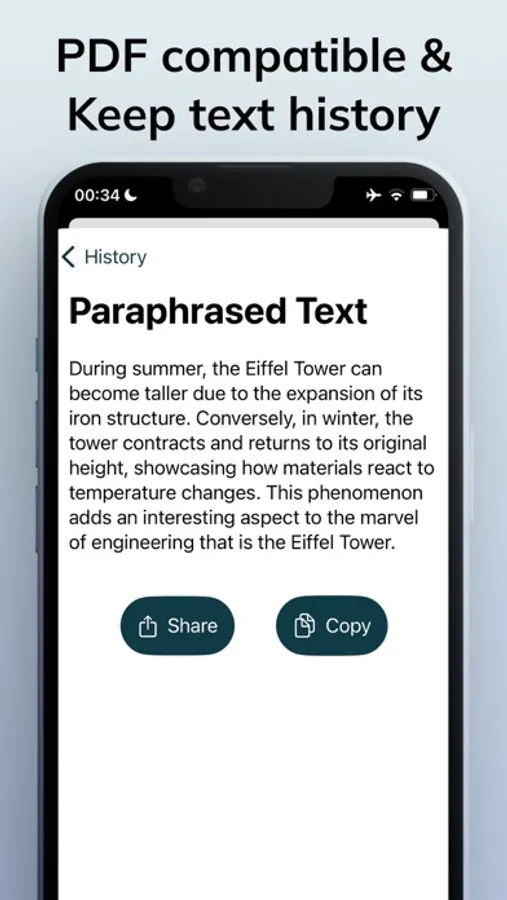 * PDF Paraphrasing: Upload your PDF files directly into the app and receive a seamlessly paraphrased document in no time.