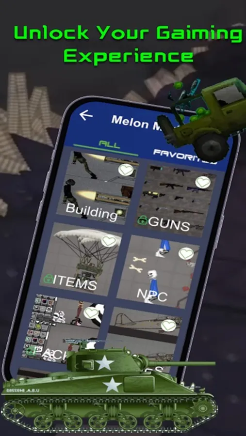 Exclusive collection: Access an exclusive array of mods and skins, including tanks, guns, robots, buildings, and much more.