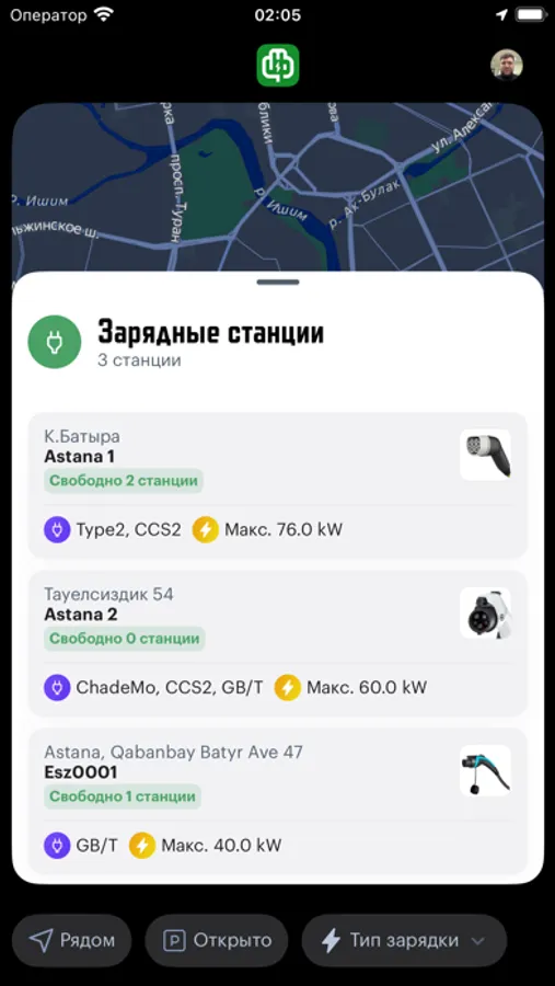 - Поиск ближайшей станции зарядки: Наше приложение предоставляет подробную информацию о доступных станциях зарядки в вашем районе, включая типы разъемов, мощность и цены.
