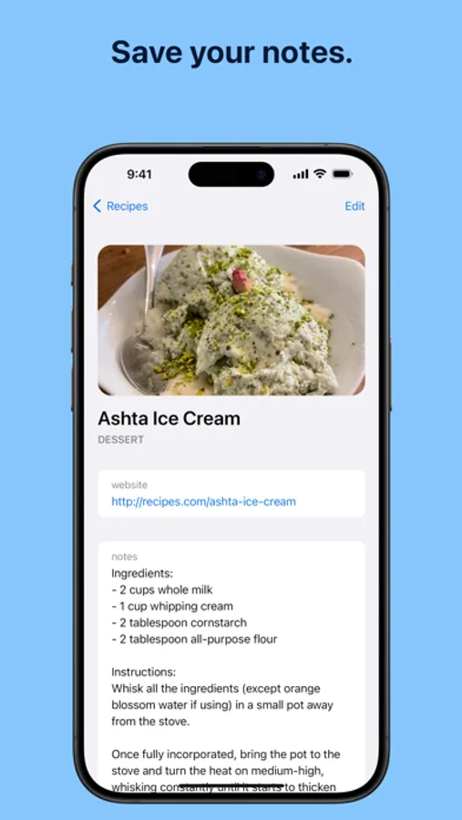 • Enhanced Recipe Saving: Save photos, websites, and personalized notes for every recipe.