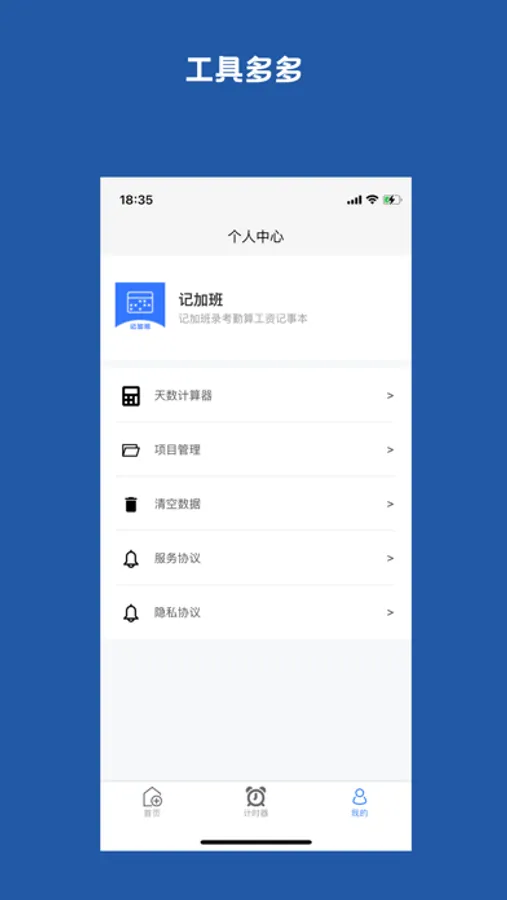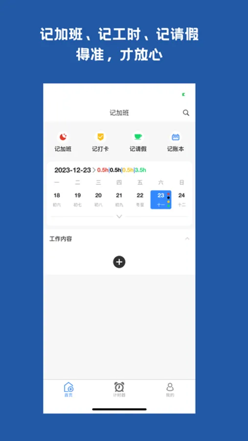 记加班提供记加班、记打卡、记请假、计时器、项目管理等功能。