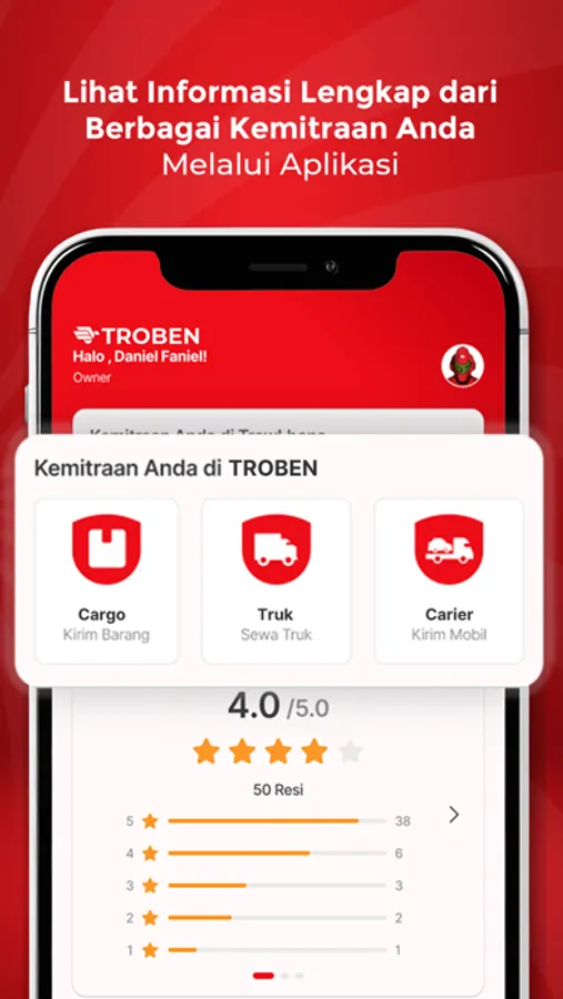 Aplikasi ini dirancang tidak hanya untuk Mitra dan Pemilik Bisnis tetapi juga untuk pengemudi truk troben individu.