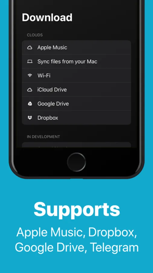Add music from Google Drive, Dropbox, and iCloud Drive. Your library is always within reach, no matter where you are.