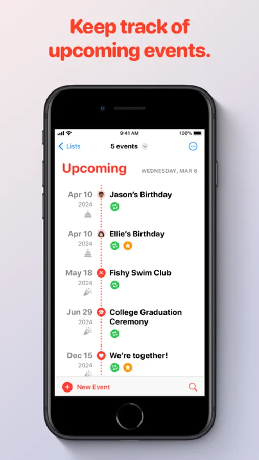 - Create recurring events and receive notifications.