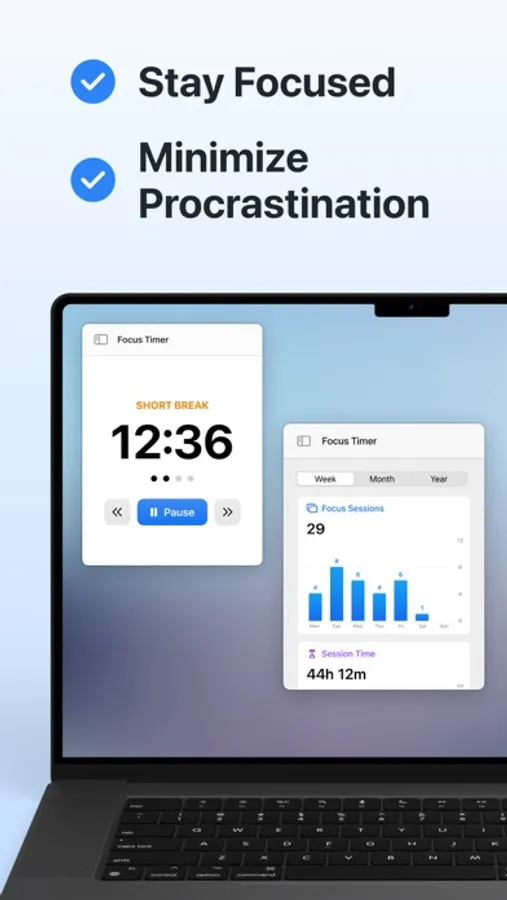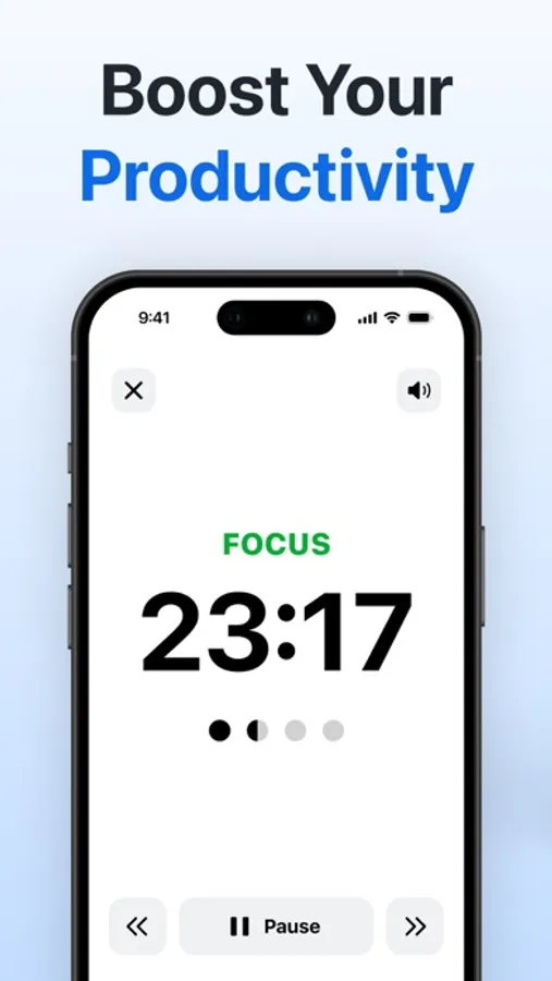Track your progress, set achievable daily goals, and watch your productivity soar. The app provides insightful statistics on your focus sessions to help you identify patterns and measure productivity trends. Stay motivated by celebrating daily wins and addressing areas for improvement.