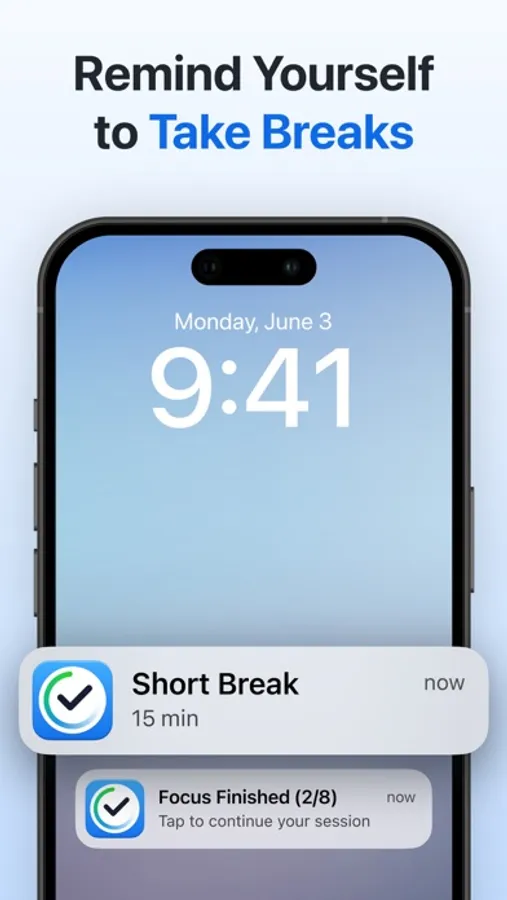 Receive audio and visual alerts that signal the end of each session. Enable push notifications to receive timely reminders to start or resume your focused sessions. Increase your productivity with our comprehensive alert system designed for a seamless and efficient work or study experience.