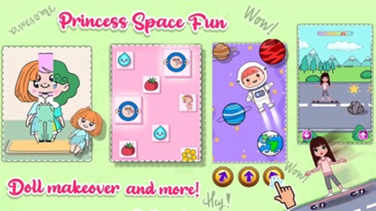 Enjoy many more mini games like Music Tiles, Fruit Slash, Candy Catch, Astronaut Space Fun, Memory Match, Emoji Match, Tic Tac Toe, Princess Coloring Book, Surprise Eggs and many more paper doll games for girls!