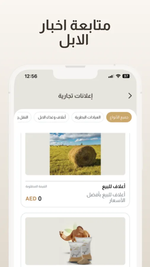 التطبيق يخدم ملاك الإبل والمهتمين بها و يقدم الخدمات التالية :
