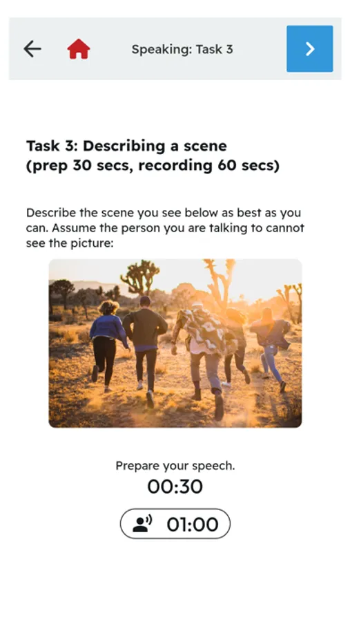 Speaking: Practice to refine pronunciation and fluency, with AI feedback to give you an estimated rating.