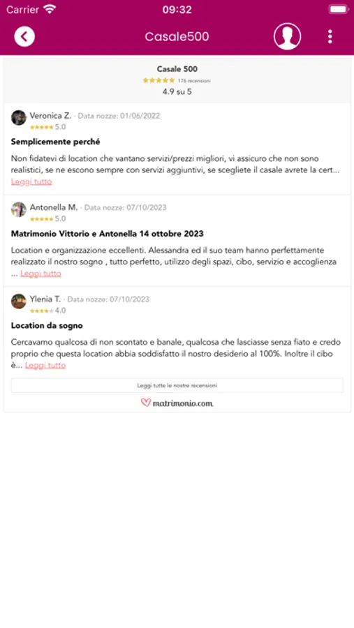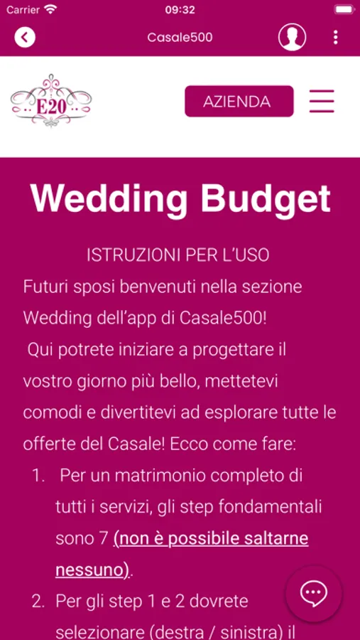 Rimani in contatto con CASALE500 fino al giorno del tuo evento