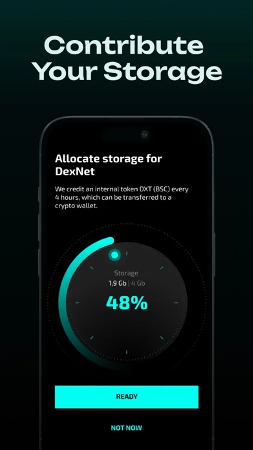 With DexPoint, you can contribute to the DexNet decentralized network by allocating a portion of your phone's memory. This allows for secure and efficient storage of DexNet's data, helping to bolster the network's performance and reliability.