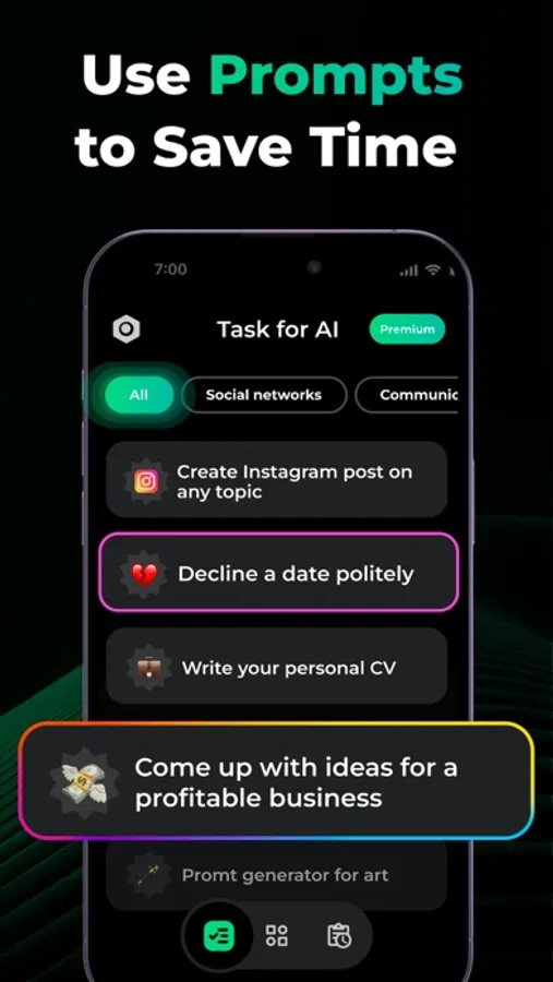 Make your day more organized and productive with AI ChatBot – Smart Assistant - your faithful assistant in solving various tasks! Our application will not only simplify your everyday life but also help you learn and grow. Let AI ChatBot – Smart Assistant make each of your days more organized, productive, and full of achievements!