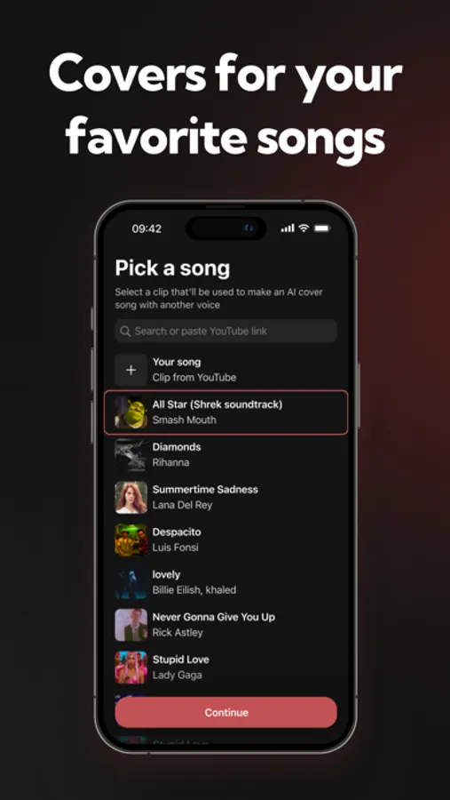 Introducing Coveroke – the best app for crafting high-quality AI music in just seconds! Whether you're singing with your voice or utilizing AI to create covers with any voice, Coveroke will help you unleash your creativity, have fun, and become popular in TikTok.