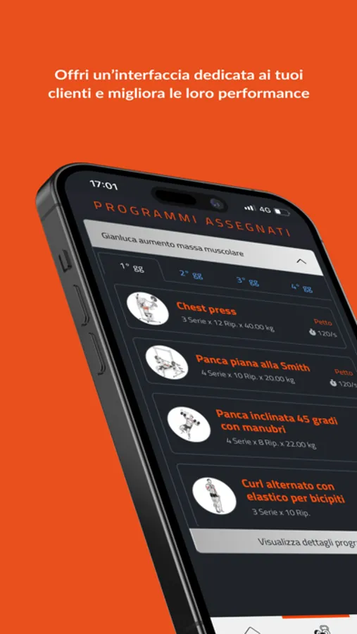 - Crea e assegna programmi di allenamento attraverso il nostro database