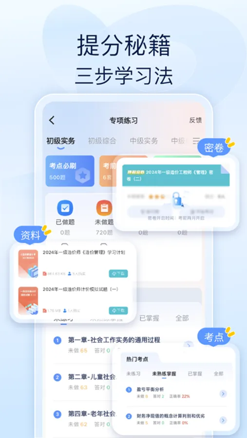 根据每年考纲及教材章节、知识点,精编试题,力求考生能吃透每一个知识点;