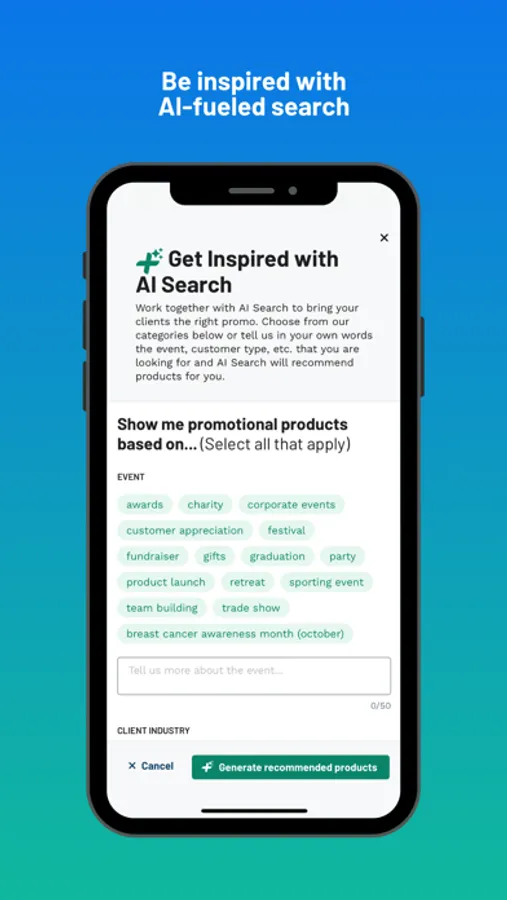 · Utilize our AI-fueled search option to find unique products for your clients.