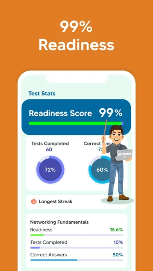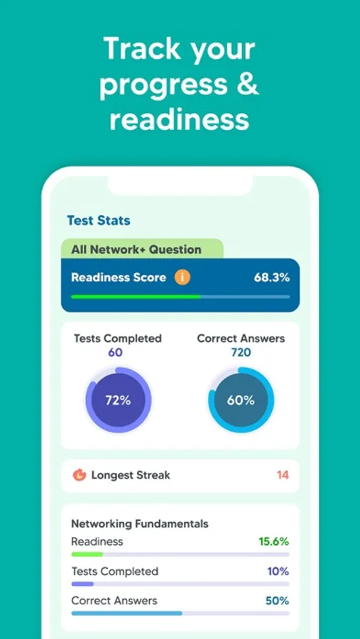 Additionally, our mobile app provides a personalized study plan based on your skill level, study frequency, and target test date. Not sure when you want to take the exam? You can adjust your study plan as often as you like. Our proprietary readiness score will help you determine when you’re ready to take the real exam and pass with a high score on your first try.