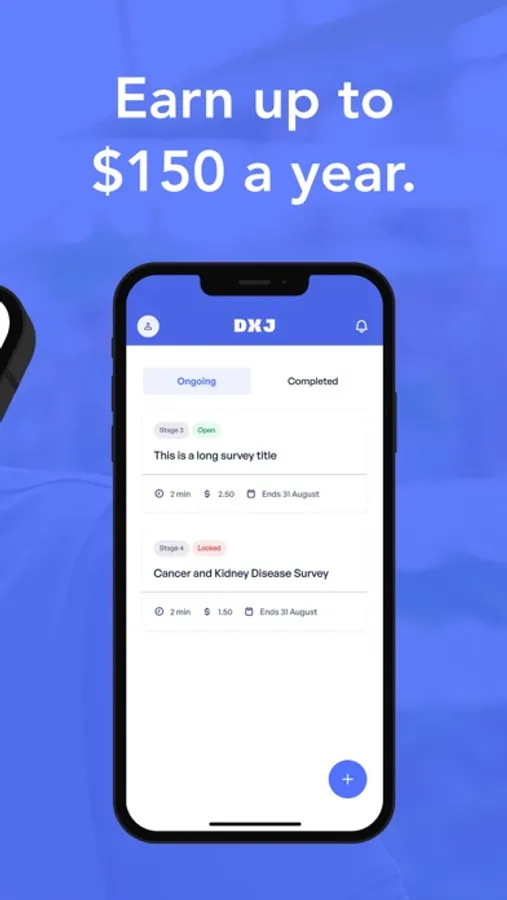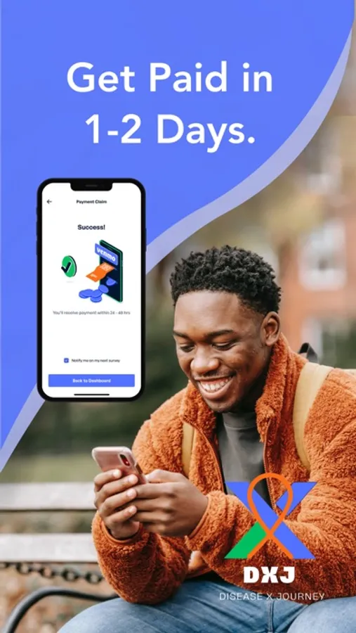 DXJ gives you the power to share your disease journey and make a difference. The DXJ app allows you to share the life events that occur along your disease journey and earn cash by answering quick monthly surveys. Designed for ease of use, it takes just a few minutes to complete each survey, and you'll be compensated via Venmo. Your privacy is our top priority—no personal information is ever sold.