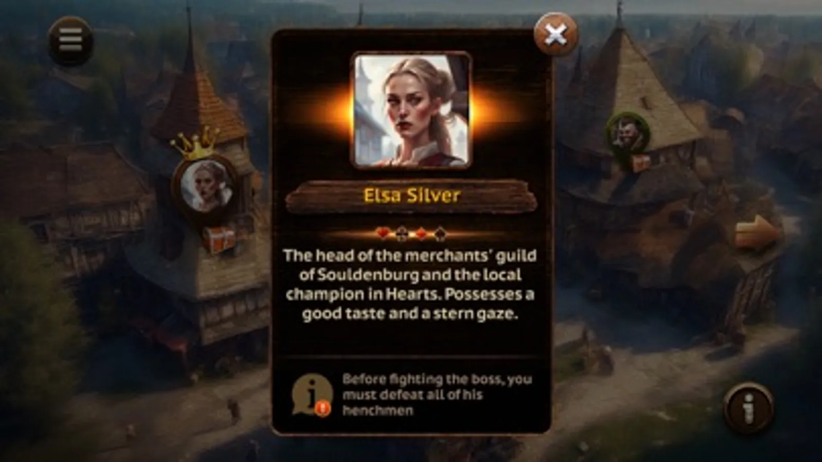 First of all this game is free and doesn't require an internet connection. You can play Hearts anywhere and anytime, you don't to be online to experience a full game potential. What makes our game unique is the fantastic story mode. Playing as Arthur Frost, you will immerse yourself in a challenging fantasy world, where mythical characters from legends and tales coexist with bandits and noble lords. Your goal: to become the best player in Hearts - the most popular local game. To achieve this, you will complete various quests, battle bosses, and earn rewards.