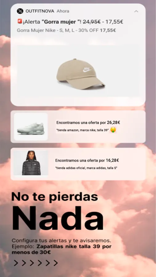 ¡Aprovecha las alertas como nunca antes! Con nuestra app podrás personalizar tus notificaciones al máximo. Elige tienda, marca, precio, talla y/o minimo descuento. Por ejemplo, configura una alerta para zapatillas Nike en Amazon, con un rango de precio de 10-25€ y talla 44. ¡Sé el primero en capturar las mejores ofertas, ajustadas a tus preferencias exactas y a tus tallas!
