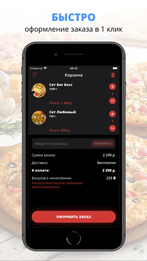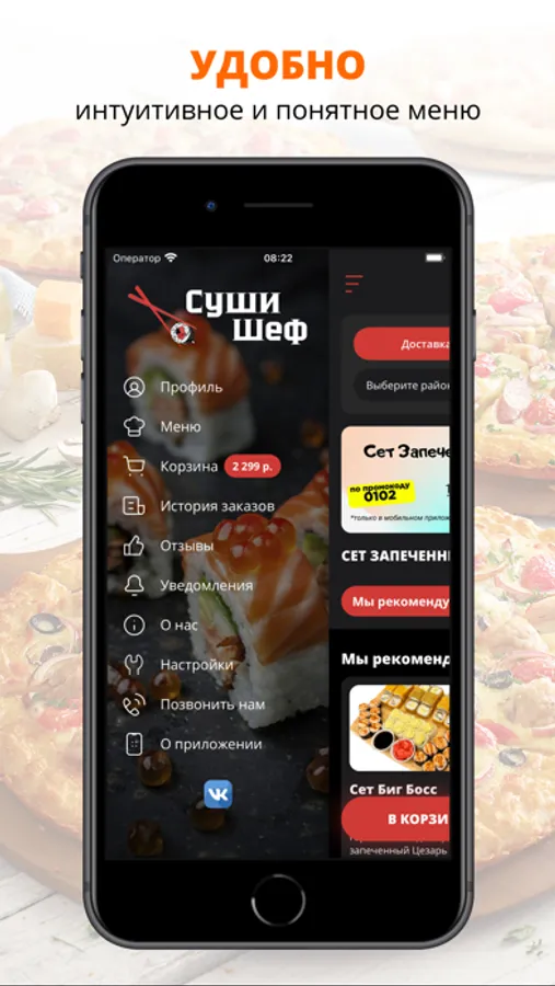 Скачивайте приложение «СушиШеф», оформляйте заказ и наслаждайтесь любимой едой, где бы Вы ни были! Приятного аппетита!