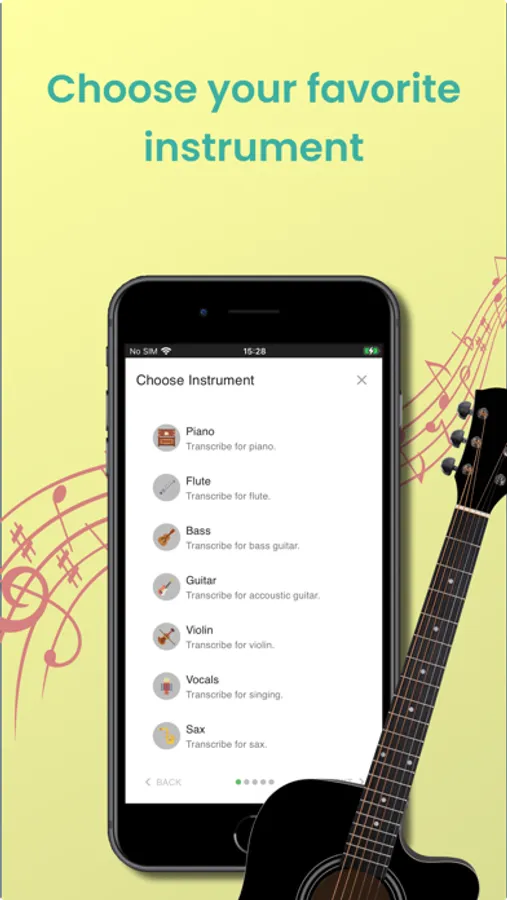 With the Melody Scanner App you can create on-the-go recordings of your instrument. Those are uploaded to your personal cloud songbook and transcribed to score.