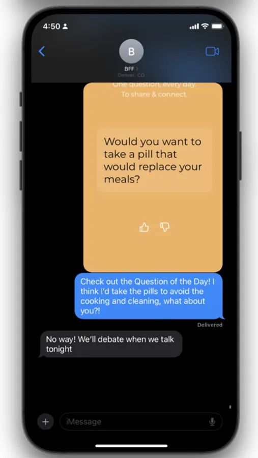 A new question will be shared every day, and the question will be the same for everyone - and can be voted on in-app!
