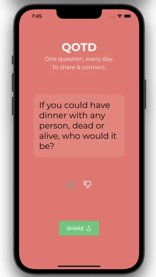 The share button encourages sharing the fun with others in your life - give QOTD a try!