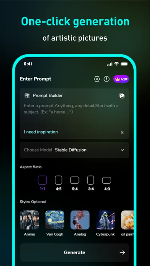 • Endlessly explore and experiment with AI visual ideas in an easy-to-use interface.