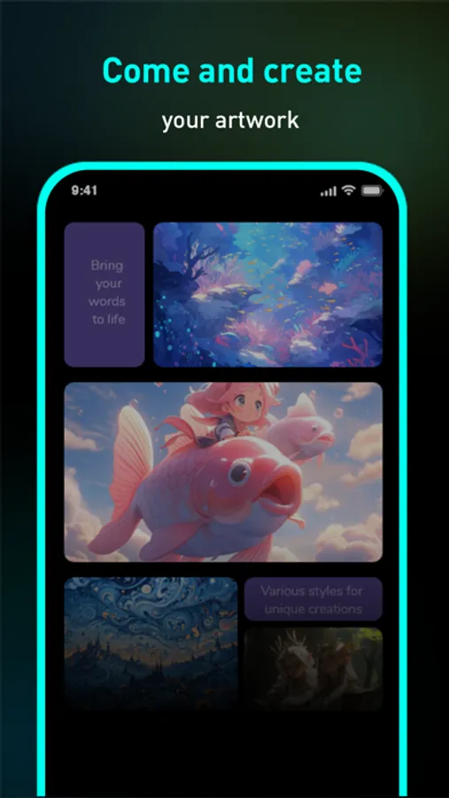 • Create art from thousands of artistic styles - Impressionism, Abstract, Realistic and more.