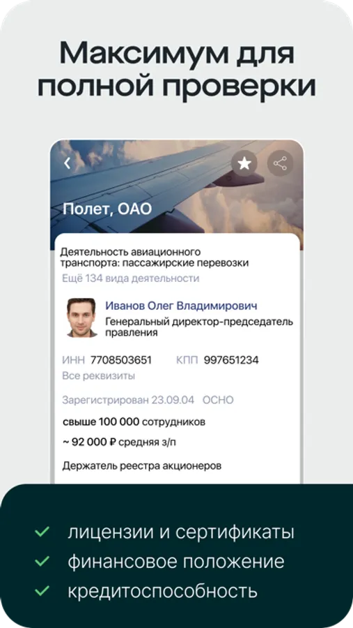 Прямо со смартфона узнавайте обо всех новых событиях и рисках по избранным контрагентам. Saby защитит ваш бизнес от недобросовестных партнёров: предупредит о неожиданном банкротстве, блокировке счетов, смене директора, новом суде и других изменениях, важных для принятия решения о дальнейшем сотрудничестве.