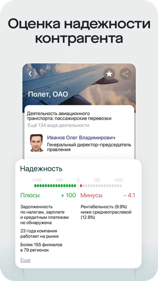 Saby поможет избежать сотрудничества с организациями, которые не выполняют обязательства, которым грозит банкротство или проблемы с налоговой. Вычислит компании-однодневки. Покажет, как часто компания выступает истцом или ответчиком в суде.