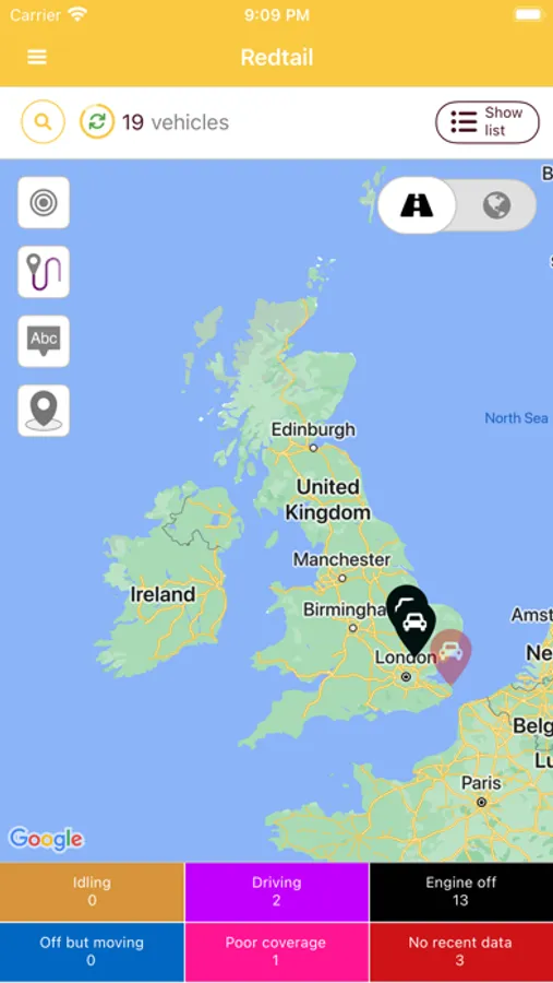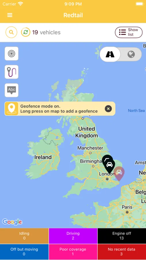 • Identify vehicle activity by colour (driving, idling, engine off, etc.)