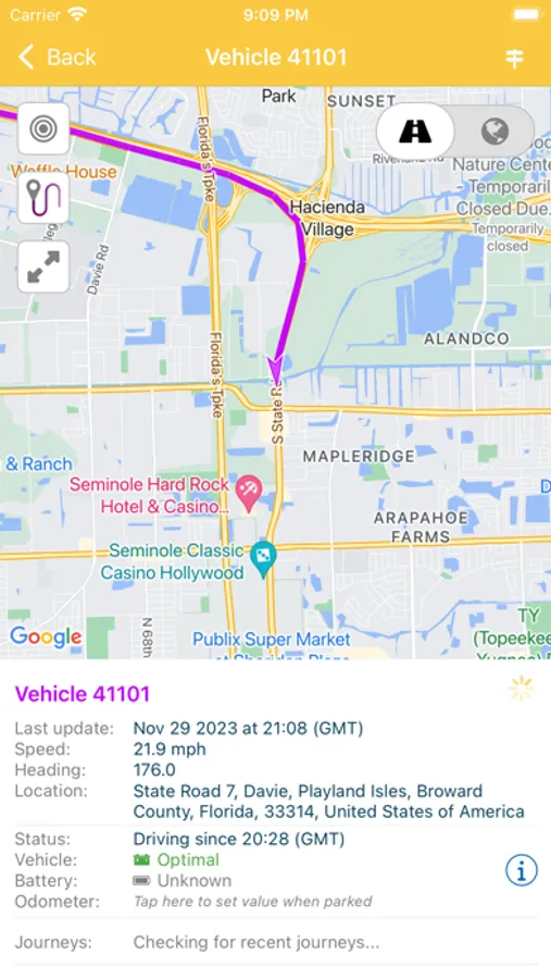 • View the positions of your Tomberlin fleet on a map, and the heading of moving vehicles