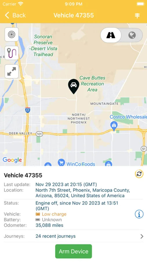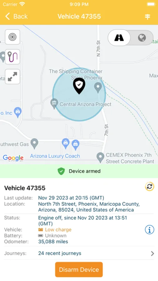 • Arm/Disarm vehicles and get alerted when it exits the monitoring location.