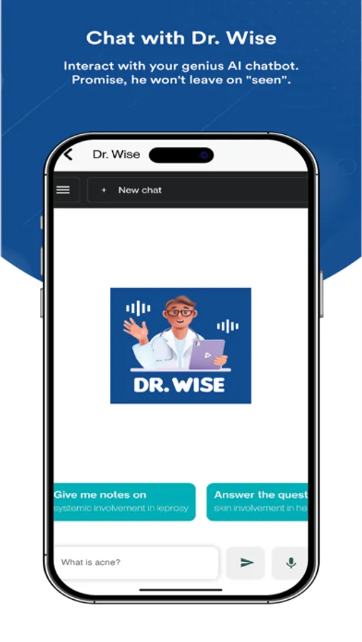 Dr. Wise AI Chatbot is conceptualised to be the learning compass that guides you through your medical journey. It enables you to: