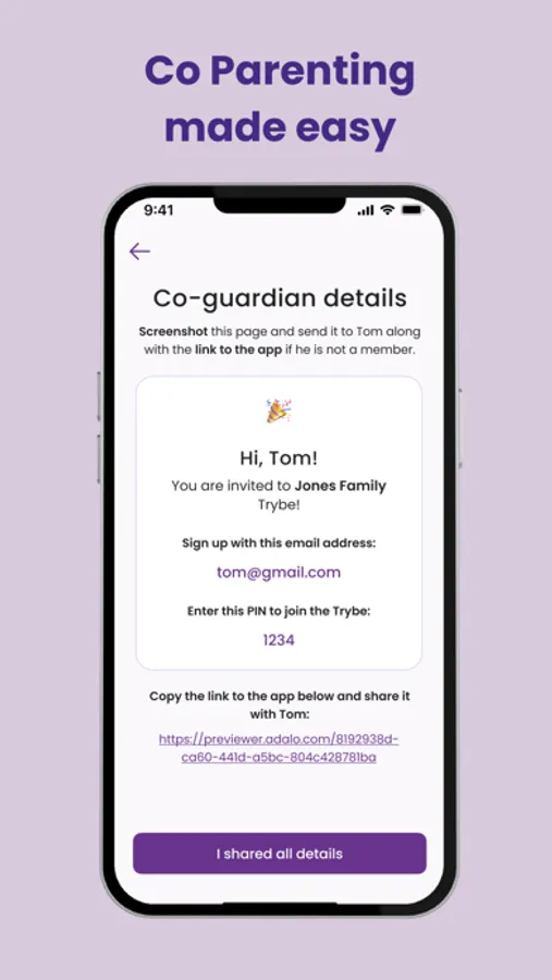 Seamless Co-Parenting Support: Share responsibilities with your partner effortlessly. Our app enables you to sync calendars, to-do lists, and child profiles, ensuring both parents are equally involved and informed.