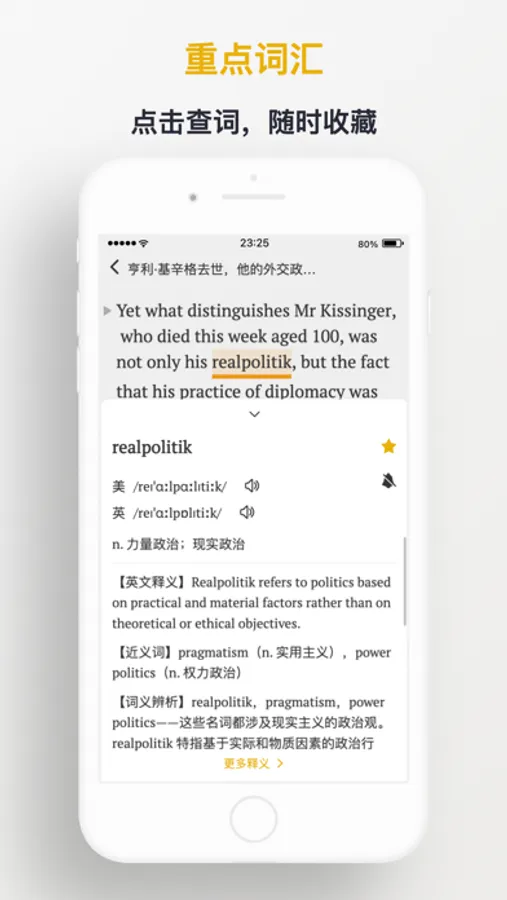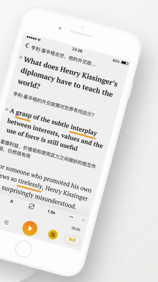 每篇外刊均配有英、美音频,随时随地练习听力。