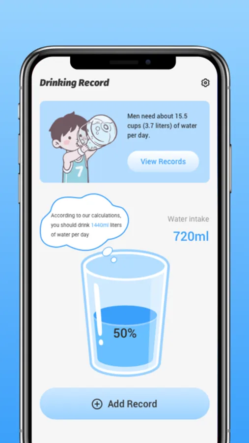 User-Friendly: Intuitive interface for easy recording and management of your hydration, anytime, anywhere.