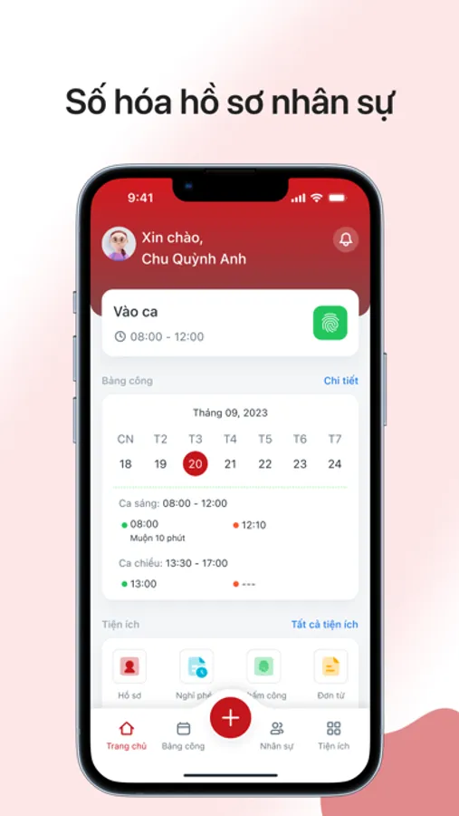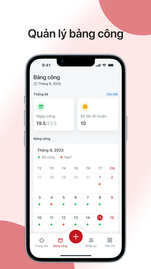Tính năng này cho phép nhân viên xem lịch làm việc của mình và thời gian làm việc hàng ngày. Họ có thể kiểm tra số giờ làm việc của mình, số giờ làm thêm giờ và các khoản trả lương liên quan đến thời gian làm việc. Điều này giúp nhân viên có thể quản lý thời gian làm việc của mình tốt hơn và giúp cho quá trình tính lương trở nên dễ dàng hơn.