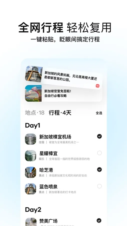 勾选后自动生成最优路线,不必费心整理,旅行抄作业蛮有一套。