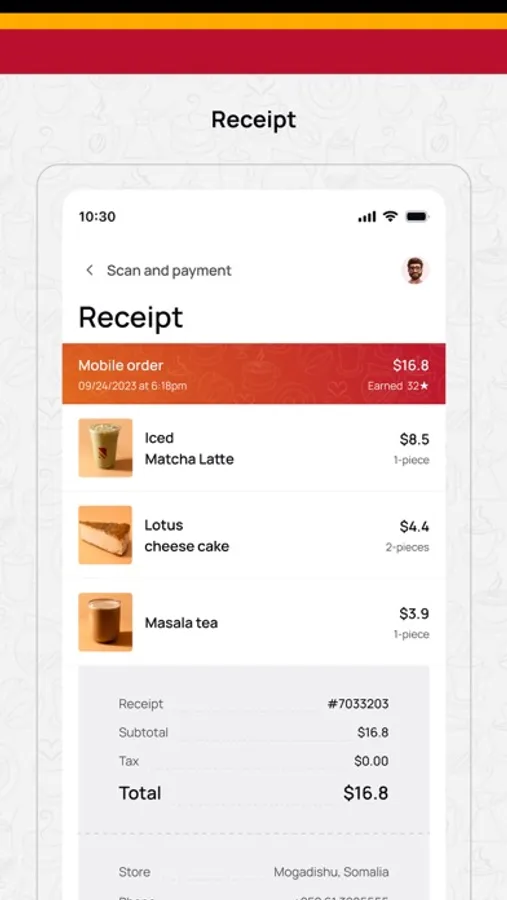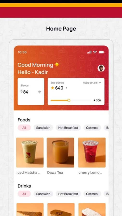 With our app, registered users enjoy swift ordering of coffee, food, and dessert, coupled with convenient online payments via stars points or trusted methods like EVC or E-Dahab. Earn loyalty points with every purchase and explore our gift card store to spread the joy with friends.